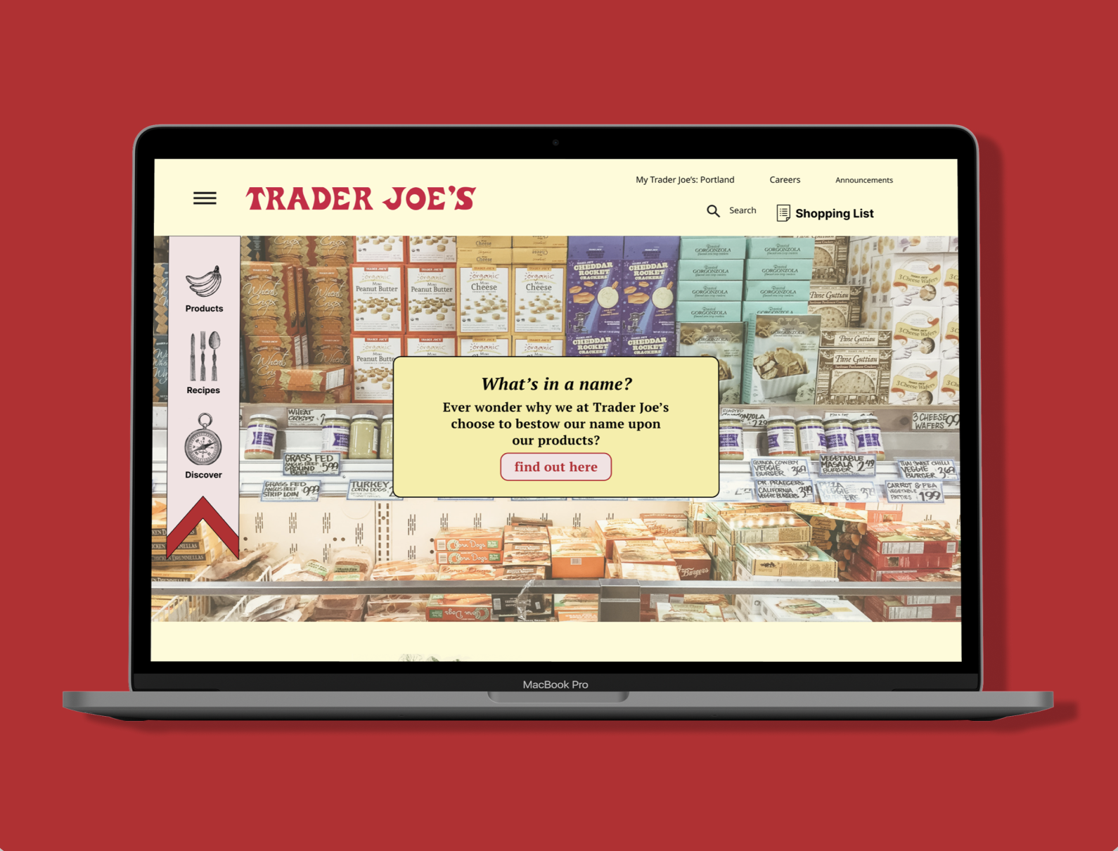 I conducted a UI redesign of the website of the iconic grocery store (and my very first employer), Trader Joe’s